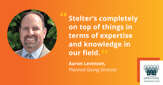 In part through the Stelter team’s leadership, the Jewish Home’s program has grown from $2-$3 million annually in mature planned gifts to $5 million today.
